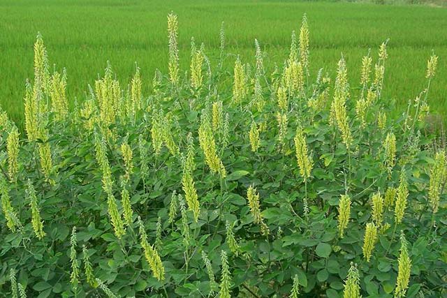 猪屎豆又名:椭圆叶猪屎豆、三圆叶猪屎豆。多年生草本,或呈灌木状;茎枝圆柱形,具小沟纹,密被紧贴的短柔毛。托叶极细小,刚毛状,通常早落;叶三出,柄长2-4cm;小叶长圆形或椭圆形,长3-6cm,宽1.5-3cm,先端钝圆或微凹,基部阔楔形,上面无毛,下面略被丝光质短柔毛,两面叶脉清晰;小叶柄长1-2mm。