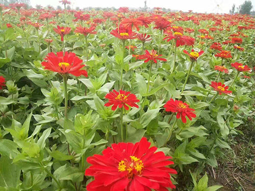 百日草,一年生草本植物。侧枝呈杈状分枝。夏秋开花,头状花序单生枝顶,花径约10厘米,花瓣颜色多样,花期长,花型变化多端,基本上都是重瓣种。